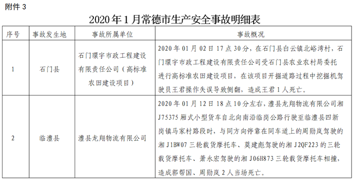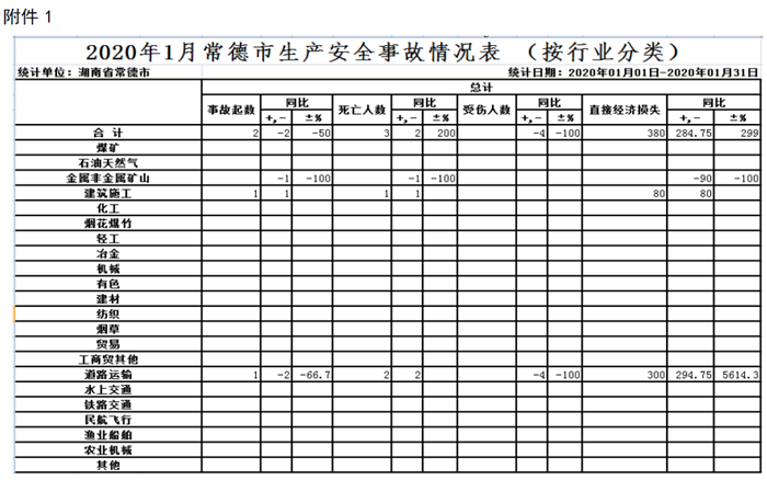 附件:1.2020年1月常德市生产安全事故情况表(按行业分类)