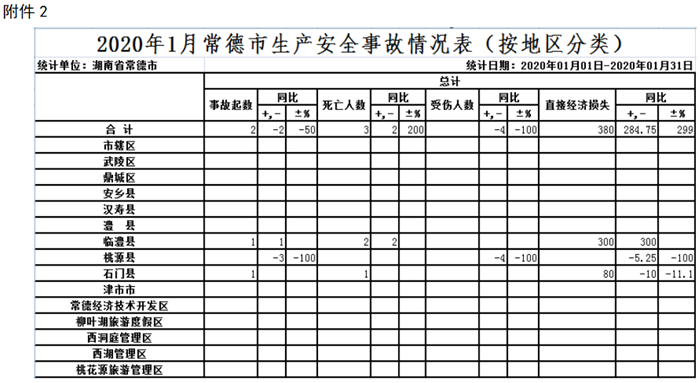 2.2020年1月常德市生产安全事故情况表(按地区分 类)
