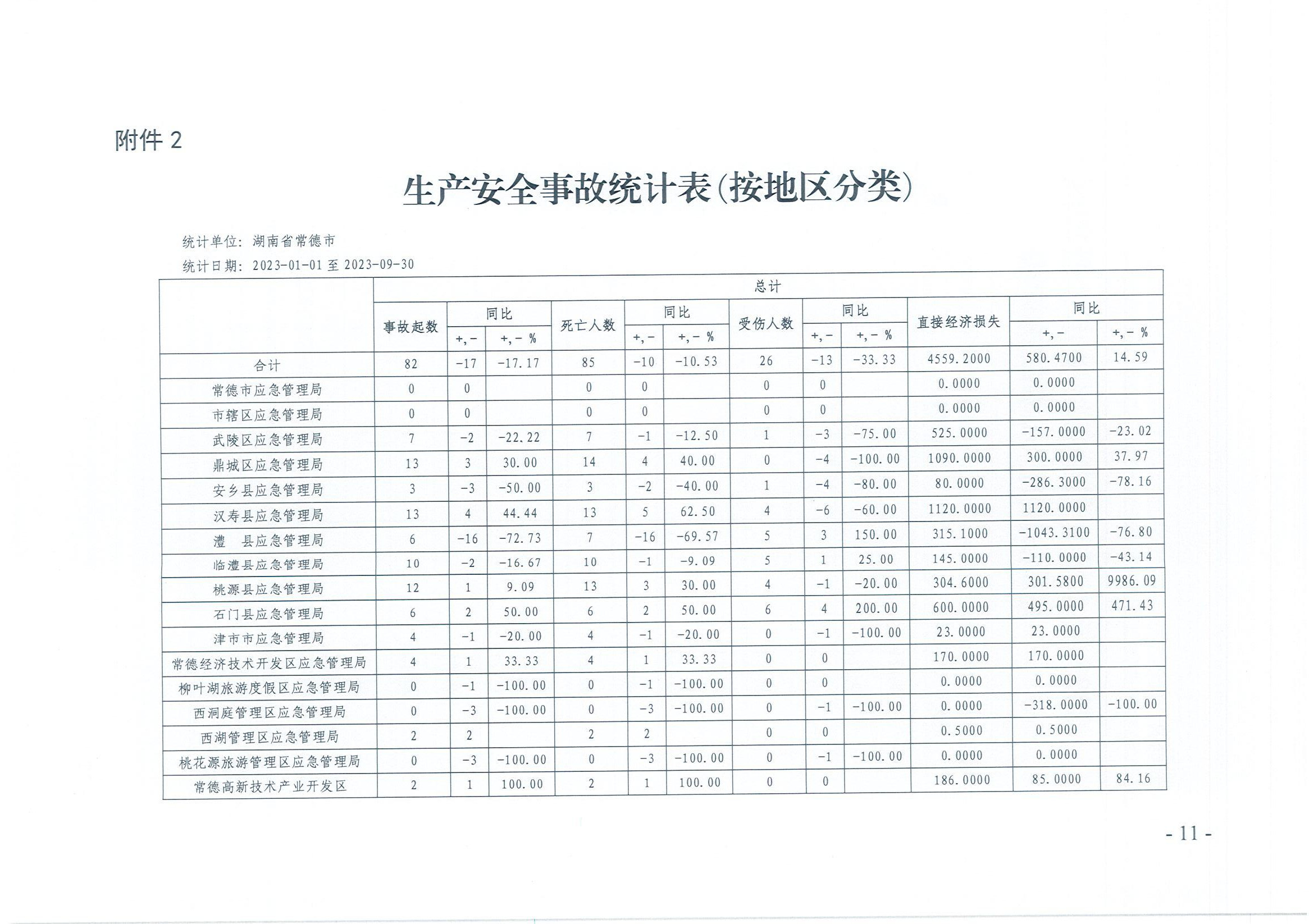 常德高新技术产业开发区:2起,死亡2人(工贸建材事故1起,死亡1人;建筑施工事故1起,死亡1人),同比均上升100%
