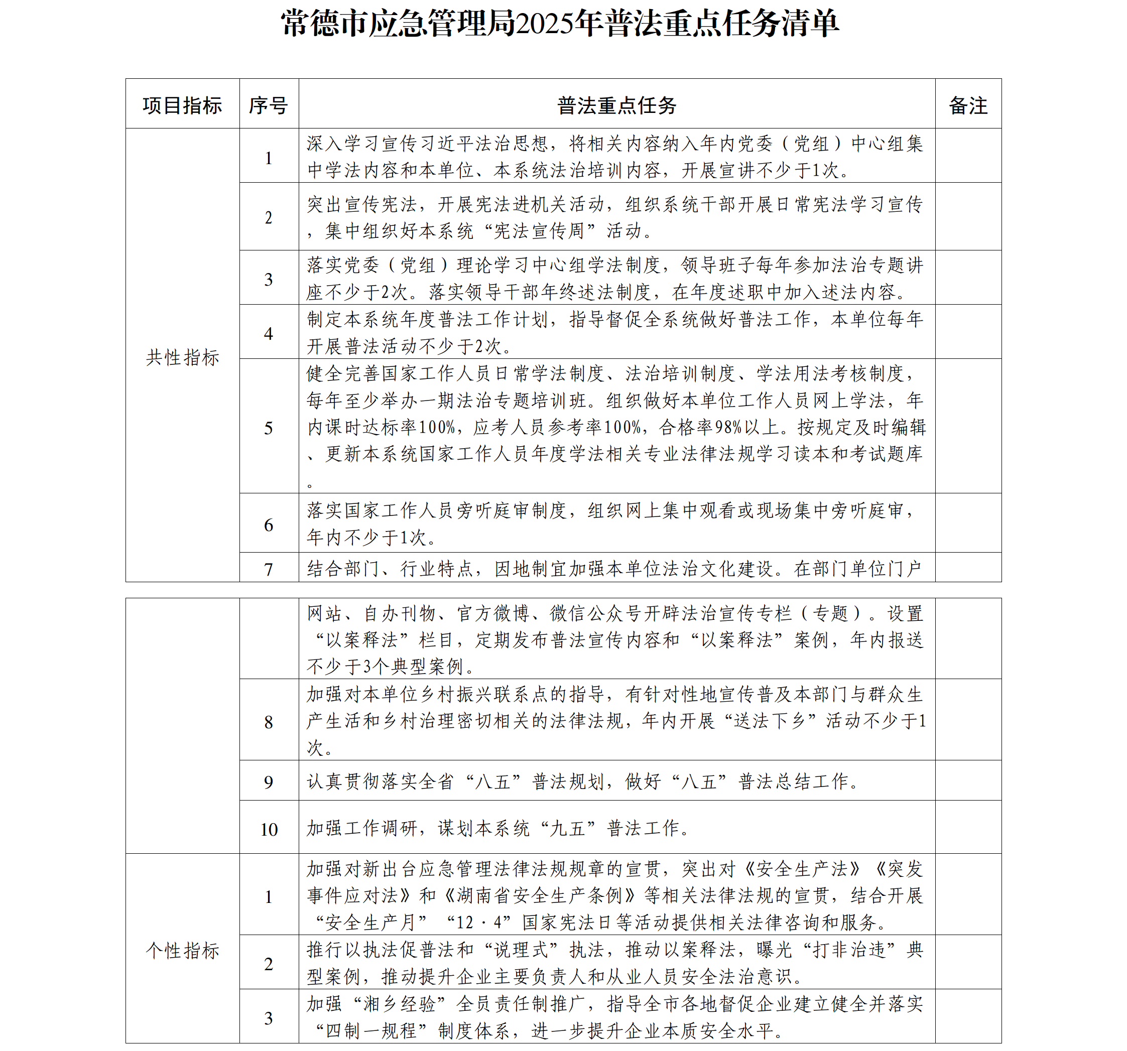 常德市应急管理局2025年普法重点任务清单