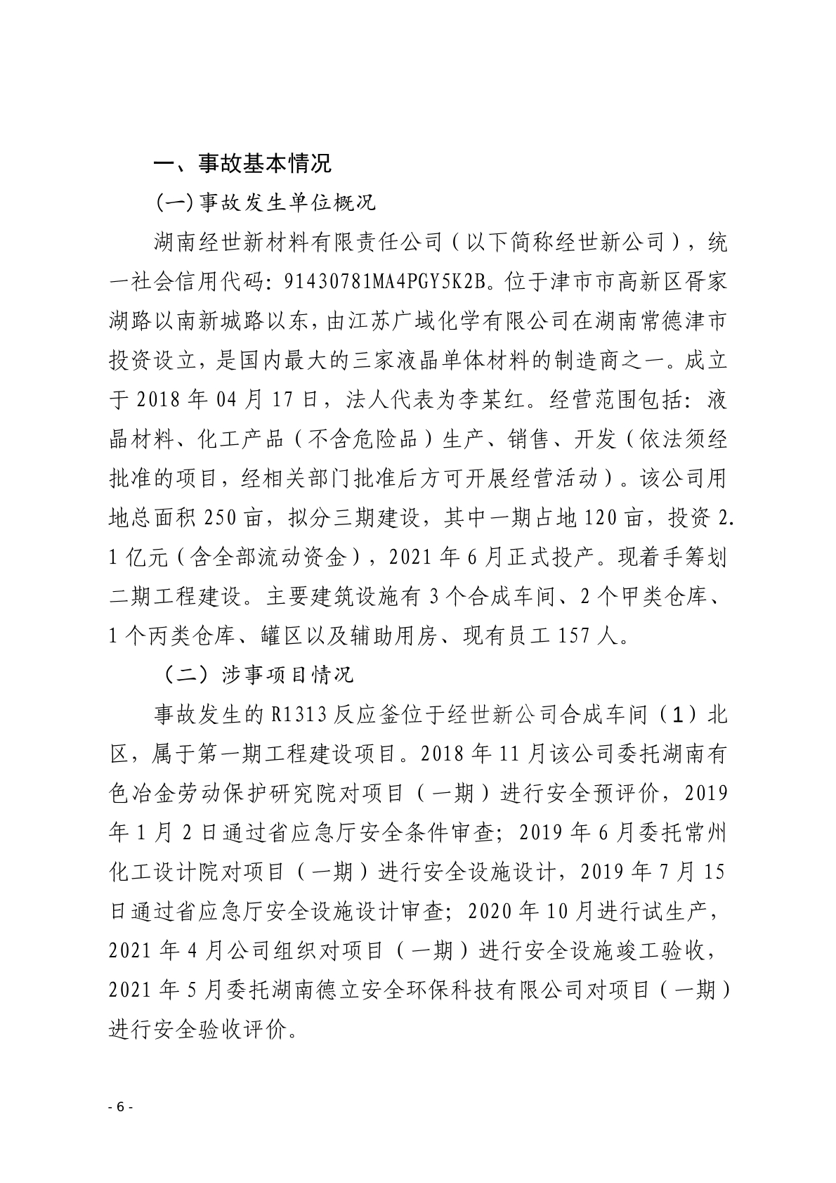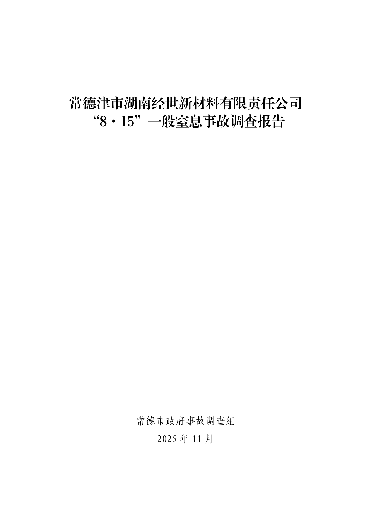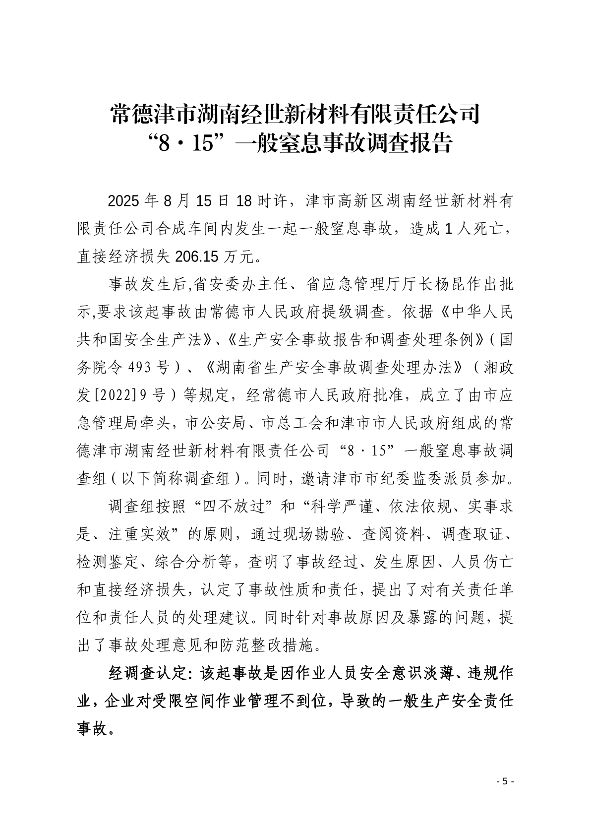 常德津市湖南经世新材料有限责任公司“8·15”一般窒息事故调查报告